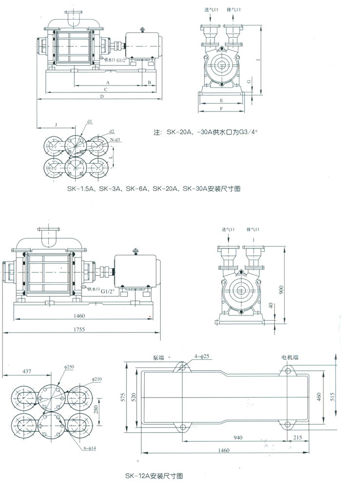SK-1.5A,SK-3A,SK-6A,SK-20A,SK-30A安装尺寸图